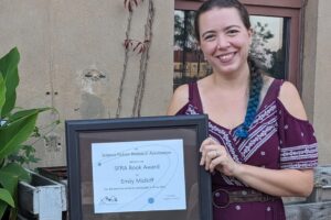 Dr. Emily Midkiff received an award from the Science Fiction Research Association for the best first scholarly and detailed study on science fiction of the year. Her 2022 book, “Equipping Space Cadets: Primary Science Fiction for Young Children”, argues for the benefits and potential of science fiction for children under 12. She received the award in Germany this August.