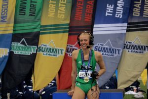 Brooklyn’s athletic career at UND is marked by consistent performance and record-setting achievements. She is a Summit League Indoor Conference Champion in the women’s 800 meters and has contributed to multiple UND indoor school records, including the distance medley relay and the 4×400 relay. She also ranks among UND’s all-time performers in several indoor and outdoor events.