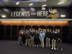 Throughout the visit, students met with professionals from the Minnesota Twins, Minnesota Wild, Minnesota Vikings, and the Saint Paul Saints. Each stop provided valuable behind-the-scenes insight into the operations, strategy, and day-to-day work that drives professional sports organizations.