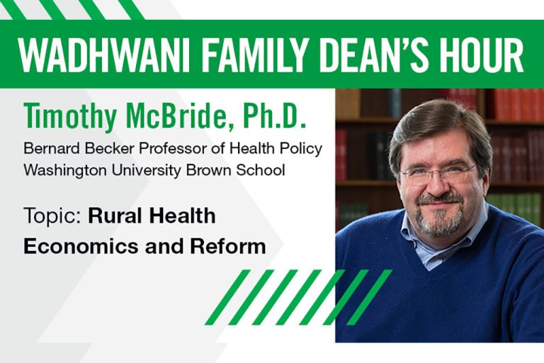 For the next Wadhwani Family Dean’s Hour, Dr. Timothy McBride, the Bernard Becker professor of health policy at Washington University’s Brown School, will discuss health economics and reform in the context of rural healthcare. The presentation will be held in SMHS Room E101 (the Fee Auditorium) at noon on Thursday, Dec. 5. Lunch will be […]