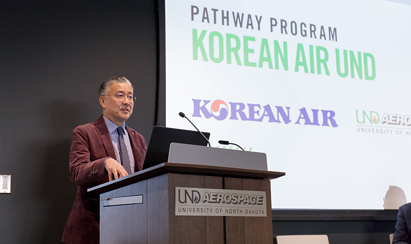 “I would like to express my sincere appreciation for UND’s support to our Korean students,” said Byung Il Yoon, vice president of Korean Air’s Flight Crew Training Center, who signed the agreement with Paul Lindseth, dean of the Odegard School. “This Pathway program will be a good chance for Korean Air to recruit well-trained pilots.