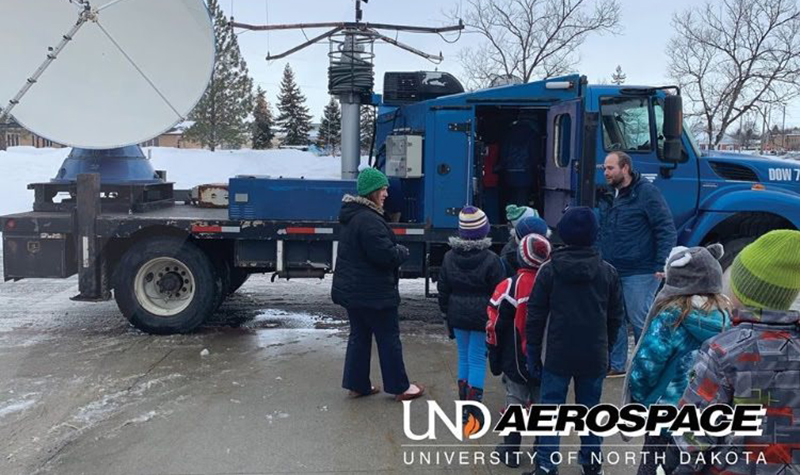 Beyond a few flurries, though, the weather didn’t come for the first few weeks. Luckily, that opened the door to fulfilling the project’s secondary objective: outreach. The Doppler on Wheels visited a number of schools in the area, and on UND’s Aerospace Community Day, the vehicle’s spinning radar dish was the first thing people saw when they stepped off the bus at the University’s airport facilities. Hundreds of kids have been through the DOW during the past month.