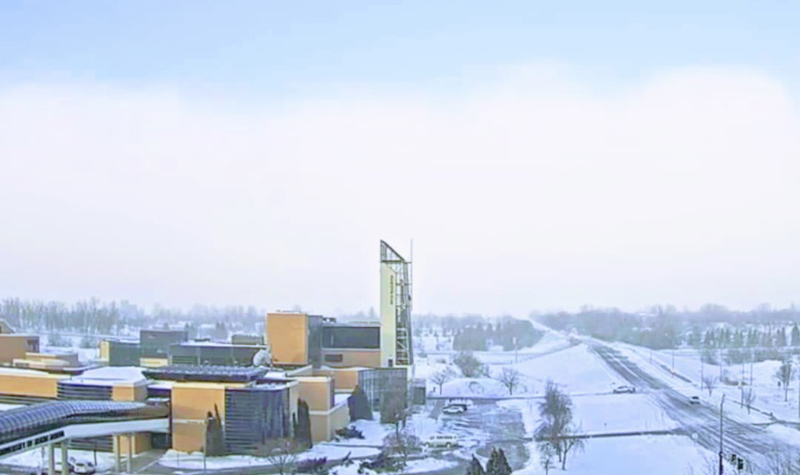 The perspective of UND’s Skycam, found on the Atmospheric Sciences YouTube page, shows Wednesday’s blizzard conditions at around 8:50 a.m.