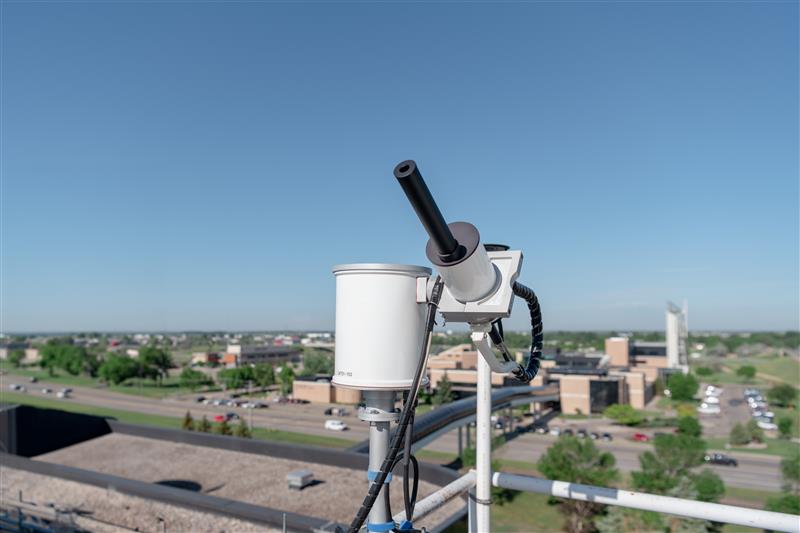 The first instrument, known as Pandora, is a spectrometer that tracks the Sun and Moon to detect minute changes in ultra- violet and visible light. This information is then used to identify the amount of trace gases in the atmosphere such as ozone, nitrogen dioxide, formaldehyde, and sulfur dioxide. This effort led by NASA and the EPA will improve long-term monitoring of these gases in the region. An additional Pandora was installed at Sitting Bull College in Fort Yates, ND.