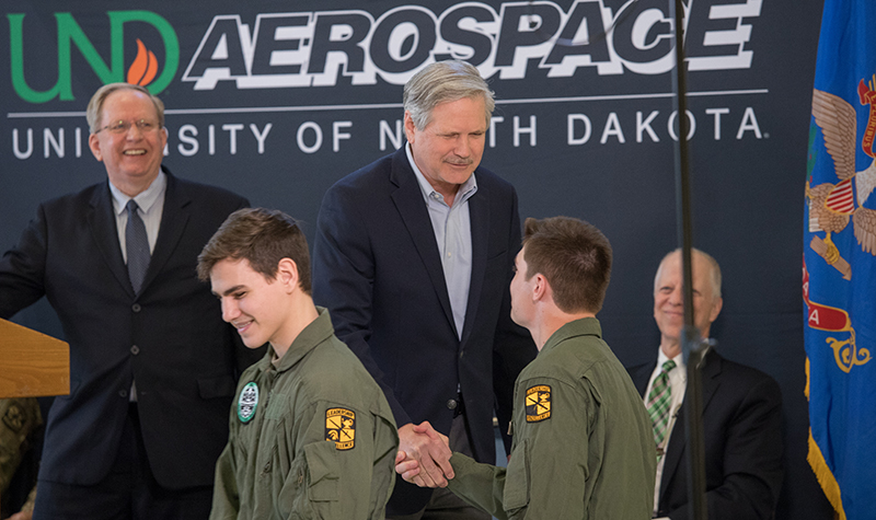 U.S. Senator from North Dakota joins military and University leaders to celebrate return of valuable flight program