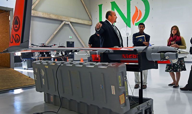 UND Aerospace plans to take its ASTM International certified UAS training to industry Paul Snyder, director of the UND Aerospace UAS Program, shows the school’s UAS capabilities to a a group of visitors. Snyder is a member of the ASTM International committee that developed industry standards for UAS training and operations. Photo by Patrick C. […]
