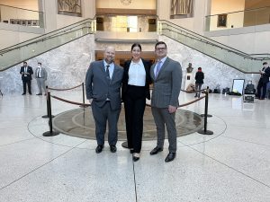 UND School of Law’s other team, consisting of Seth Desrocher (3L), Daniella Tavares (2L), and Leon Walter (3L) did an excellent job at the preliminary rounds as well, narrowly missing advancing to the next stage. The team faced some tough competition in those rounds but tried each casewith zeal and conviction. The team members were praised for their command of the case, their excellent control of the courtroom, and their mastery of the rules of evidence. “This success is a testament to the dedication and talent of my teammates, as well as the outstanding leadership of our coaches, who believed in us, challenged us, and built teams capable of competing at the highest level,” said Walter.