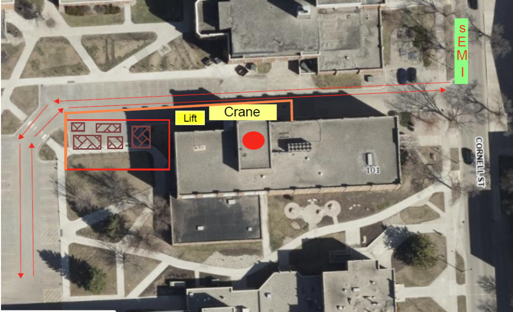 - Due to weather equipment will be uncrated and raised on the roof Wednesday 12/10/25