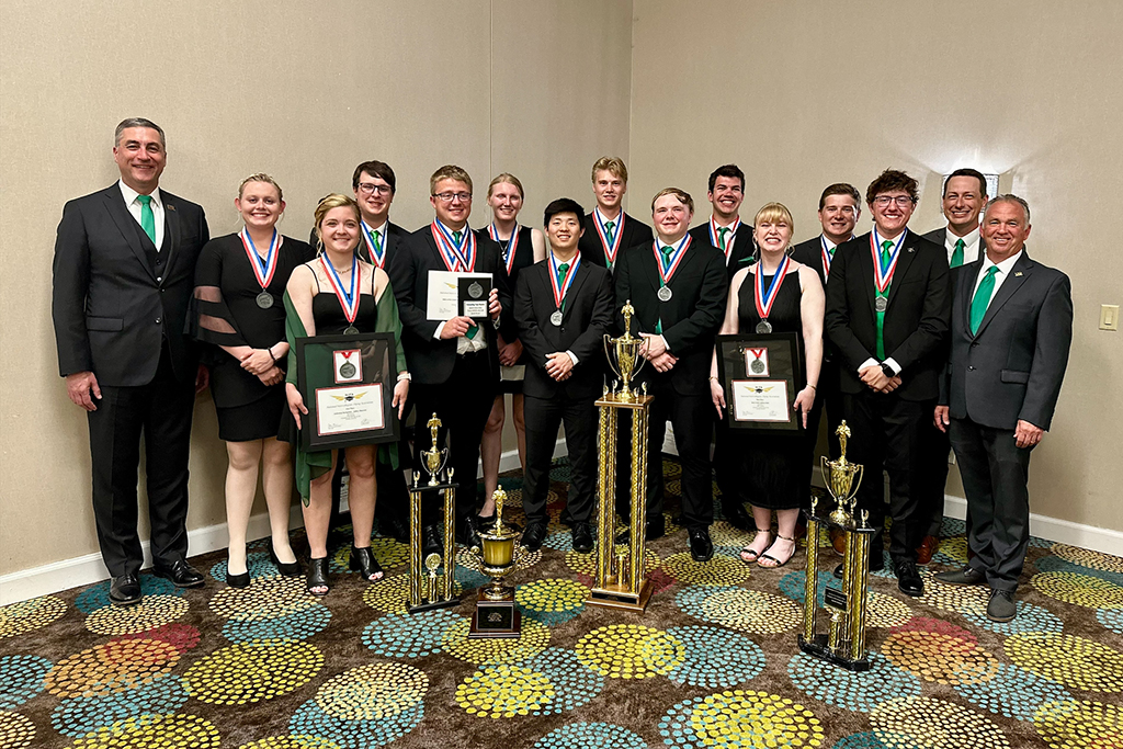Hosted this year by the city of Janesville, Wis., and the Southern Wisconsin Regional Airport from May 13-18, UND’s Flying Team won a number of championships, including again winning the Judges Trophy (alongside three other championship titles) for all manner of aircraft operations, either in the air or on the ground.