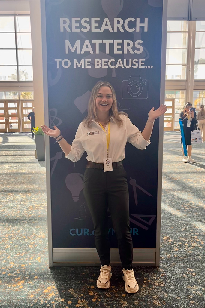 “I explored a lot of other programs, but ultimately landed on UND for their online biomedical engineering program,” she said. “When I transferred, I met with all the biomedical engineering professors. They were excited to have me and saw how my sports background added perspective.”
