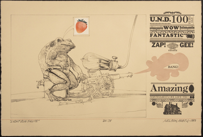 Nelson, who was inspired by Old Masters like Leonard Da Vinci, created highly-technically, yet surreal and imaginative drawings, prints and intricate collages that displayed his talent as a draftsman and showcased his unique creative vision. His last show, “Animals” recently closed at Karen Anderer Fine Art, and was featured in Lancaster Online. The exhibit featured a selection of recent work and pieces from Nelson’s extensive vault.