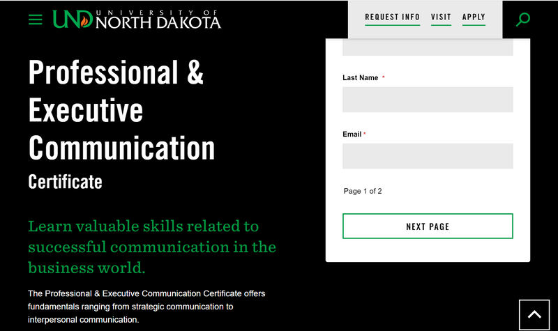 Through the College of Arts & Sciences, UND students can earn certificates in Diversity and Inclusion, Professional & Executive Communication, Writing & Editing, Foreign Language, and Society, Technology and Values. The programs are part of the University’s effort to make sure all students graduate with workforce-ready skills. Web screenshot.