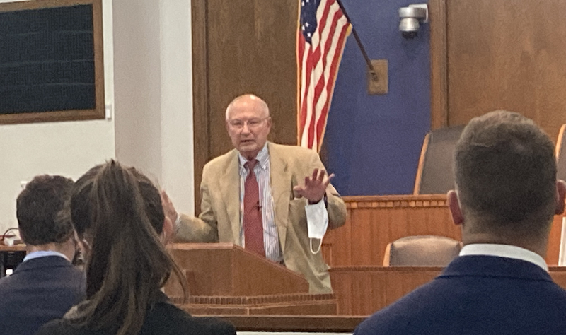 In his talk, Augustyn recalled incidents from his time at the Supreme Court, as well as his service as assistant director of the Administrative Office of the U.S. Courts, deputy director of the Association of American Law Schools and assistant dean at Boston College Law School, among other posts.