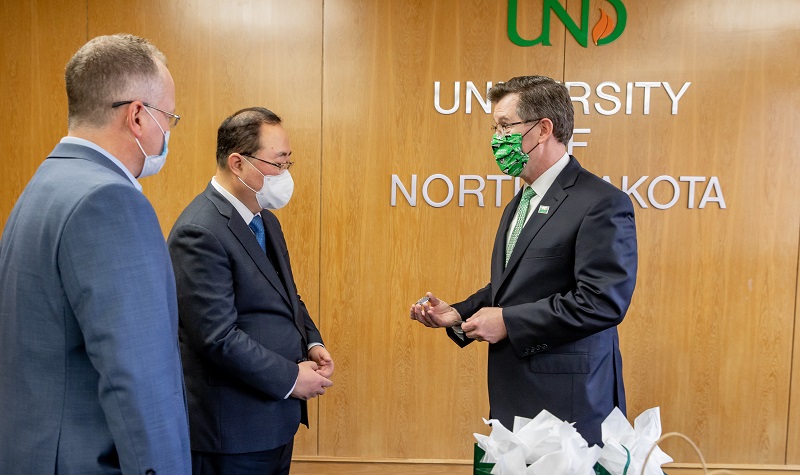 - Grand Forks Mayor Brandon Bochenski: “Thank you so much, (Consul General Young Sok) Dr. Kim, for coming over and talking today. We talked about all kinds of different relationships — business relationships, personal relationships and academic relationships. This is your first chance to visit not only Grand Forks, but also North Dakota. So, first of all, welcome. We’d love to be able to get you back here many more times.”