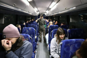 After all of the passenger names are called and checked off — and a buddy system established for rest stops — it doesn’t take long for everyone to settle in. I figure it’s as good a time as any to meet my neighbors.