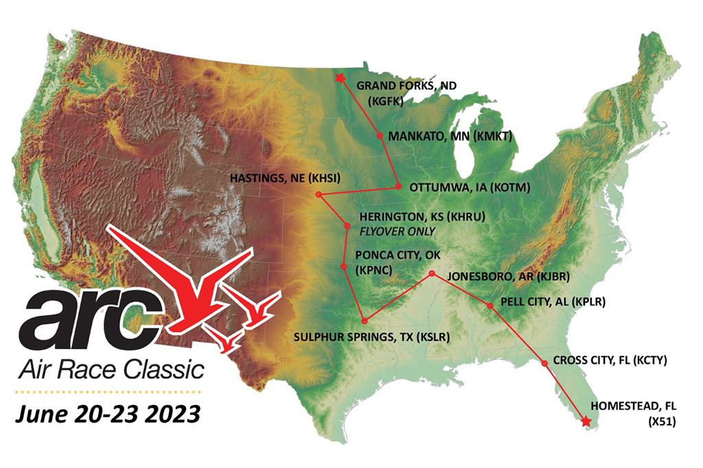 The 2,684-statute-mile competition across 12 states begins at 8 a.m. Tuesday, June 20, with 42 teams and 100 racers taking off from the Grand Forks airport. The competition ends Friday, June 23, at the Miami Homestead General Aviation Airport in Homestead, Fla.