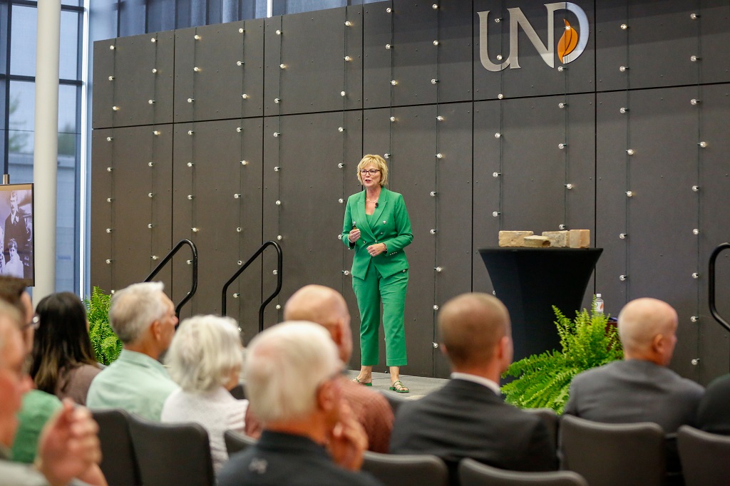 The UND Alumni Association & Foundation saw its endowment fund grow to a record $380.4 million during the fiscal year that ended on June 30, 2023 (FY 23). The record level was announced at the State of the UND Alumni Association & Foundation Address, which was made by DeAnna Carlson Zink, the association and foundation’s CEO, on Tuesday, Aug. 22.