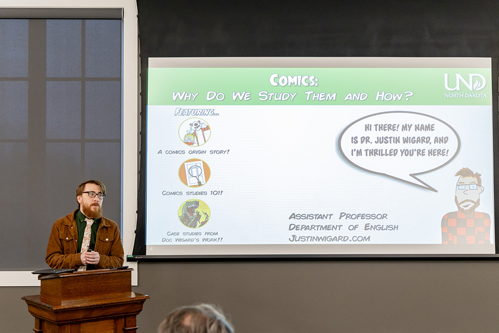 Studying comics means studying the humanities, says Justin Wigard, assistant professor of English at UND