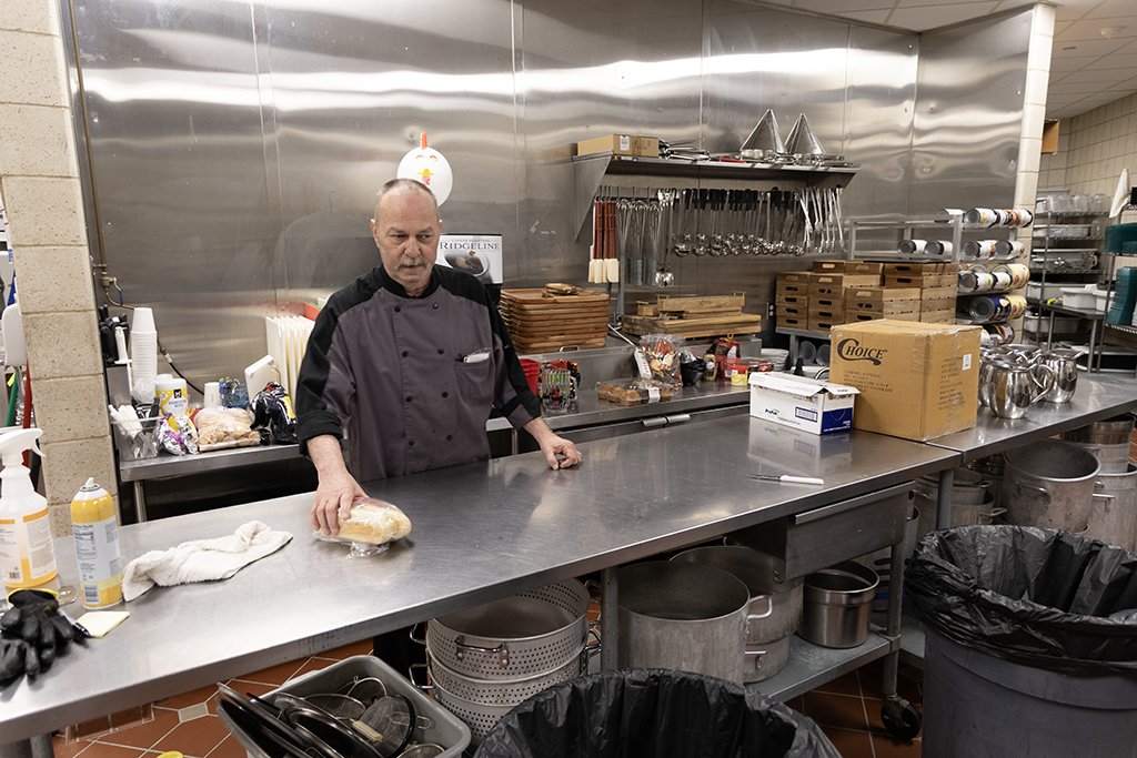 Peterson and his team of seven employees are responsible for feeding not only student-athletes but also catering the arena’s suites and preparing meals for media personnel and arena employees. This means long days — typically back-to-back 17-hour days during a weekend hockey series.