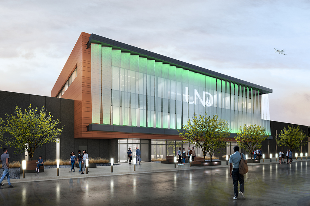 The $36 million facility is funded primarily through private donations. Among those who have contributed are Seymour “Si” Robin, namesake of UND’s Robin Hall. He has contributed $7.5 million to the project, and took part in the building’s groundbreaking ceremony last May.