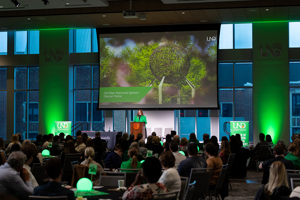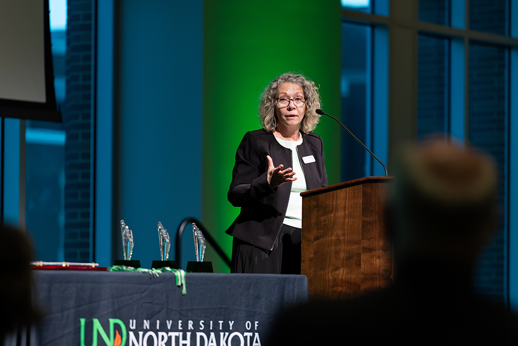 Prior to presenting the Torchbearer Awards, Monte Gaukler, retired UND professor and president of the college’s Alumni Advisory Board, reflected on her time at the University. She expressed gratitude for the resources she received that helped her navigate the transition to life as a first-generation college student.